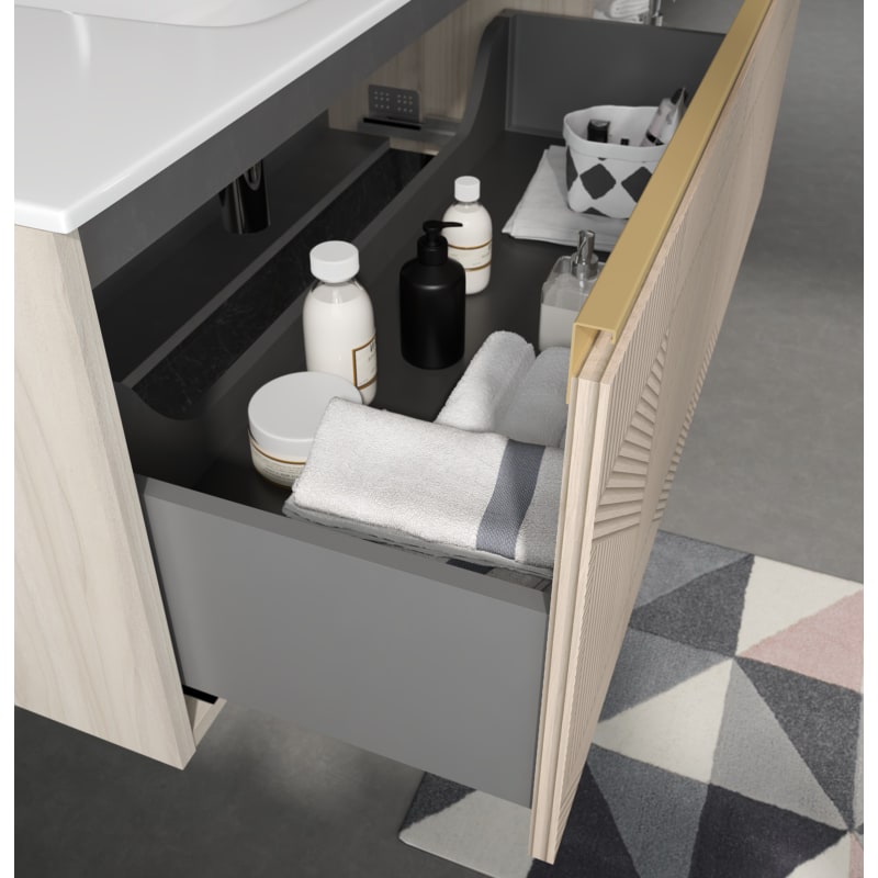 El cajón cuenta con regulación en altura y un cierre amortiguado soft-close para evitar los golpes a la hora de cerrar el cajón.