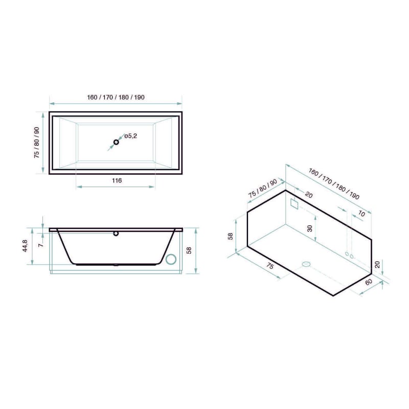 Disfruta del diseño moderno y la comodidad de la bañera exenta hidromasaje de fabricada en acrílico blanco brillo. Disponible en varias medidas, se adapta a cualquier estilo de baño y combina perfectamente con tu mueble de baño e inodoro.