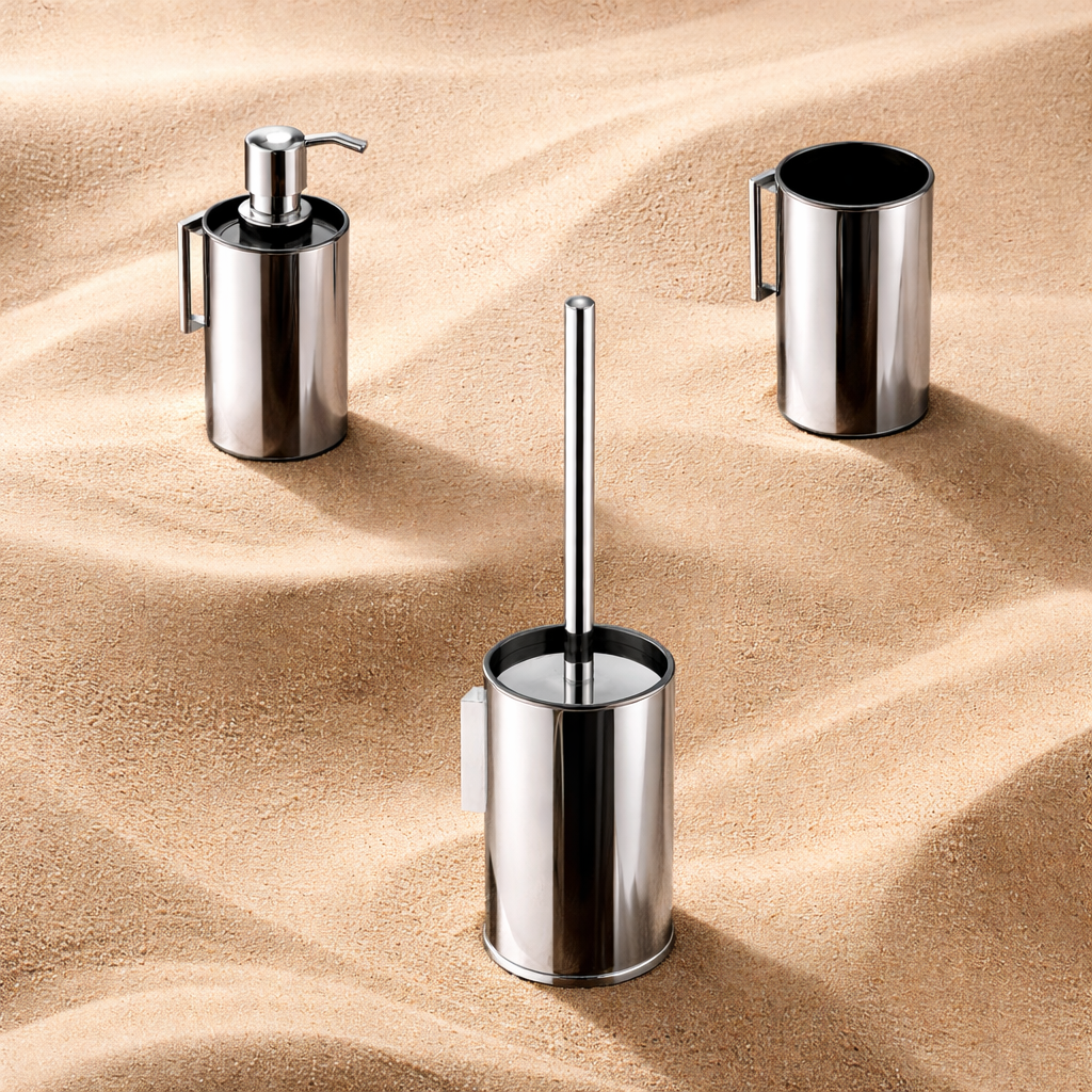 Fabricado en acero inoxidable de alta calidad, este conjunto garantiza máxima durabilidad, resistencia a la humedad y larga vida útil, ideal para baños modernos y actuales.