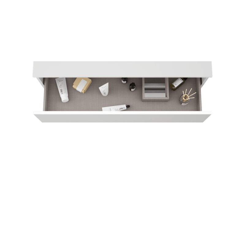 Los cajones cuenta con regulación en altura y un cierre amortiguado soft-close para evitar los golpes a la hora de cerrar el cajón.