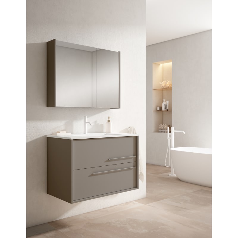 Tiene un lavabo de 14,3 cm de profundidad, se puede fabricar en ,60,70,80,100 cm.Su textura lisa suave es muy sencilla de limpiar y mantener y ofrece grandes posibilidades para adaptarlo a cualquier baño.