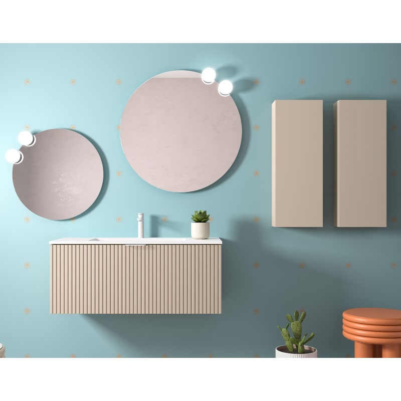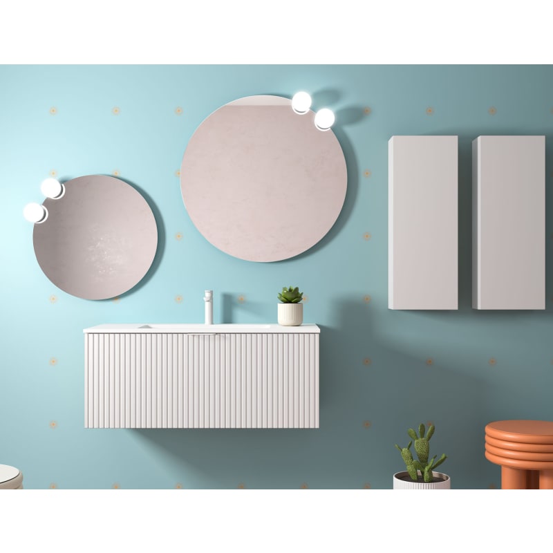 Puedes elegir entre varias configuraciones: Mueble + Lavabo o Mueble + Lavabo + Espejo + Aplique. Si opta por el espejo con aplique, este incluirá iluminación LED A++. Todos nuestros productos son 100% fabricados en España. Este mueble totalmente ensamblado haciendo muy sencillo su montaje.