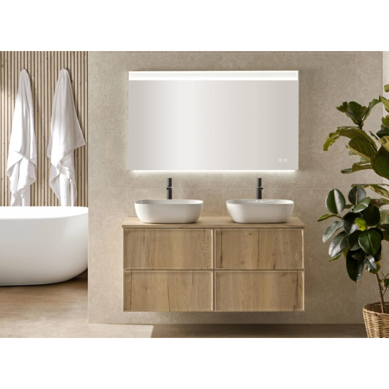 Fabricado en MDF y con tiradores tipo uñero integrados, este mueble combina robustez, estética y facilidad de uso. Su instalación suspendida aporta ligereza visual y facilita la limpieza.