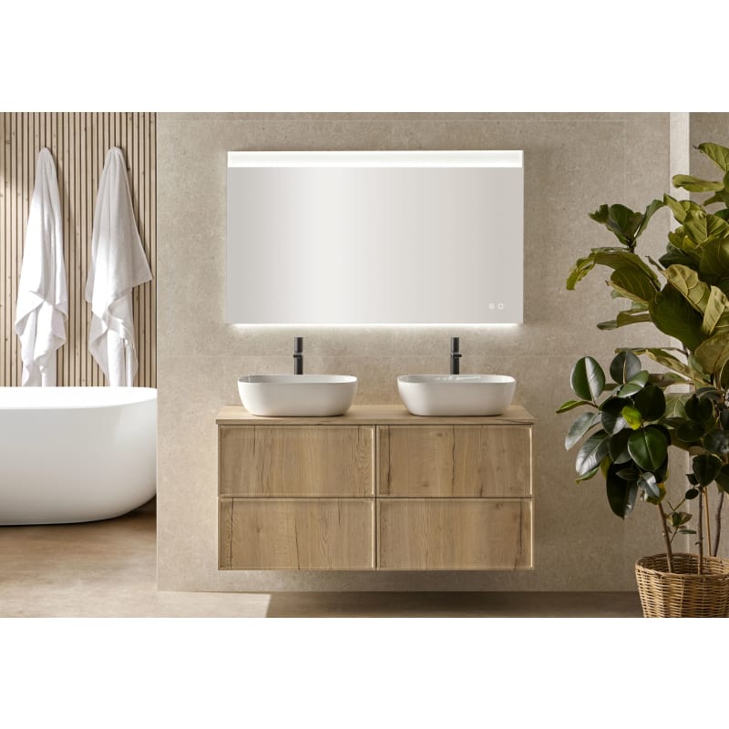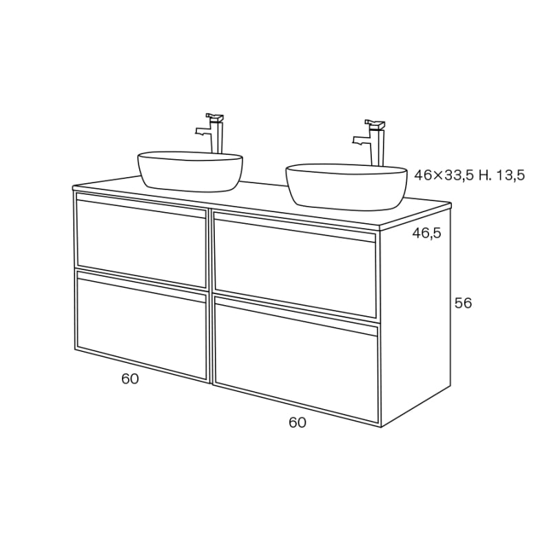 Incluye lavabo cerámico de doble seno, ideal para el uso simultáneo sin renunciar al confort. Puedes escoger entre lavabo encastrado o sobre encimera, ambas opciones diseñadas para maximizar el espacio y la comodidad diaria.