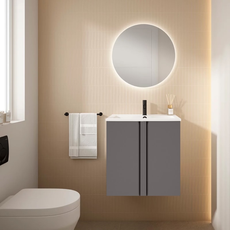 Descubre nuestro conjunto completo mueble de baño Lagos, suspendido, ideal para espacios de pequeño tamaño. Con fondo reducido y disponible en varias medidas, con una profundidad de 40cm, se adaptan perfectamente a tu baño. Su instalación es sencilla, montándose directamente en la pared y cuenta con colgado.