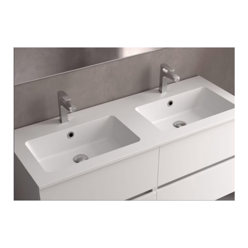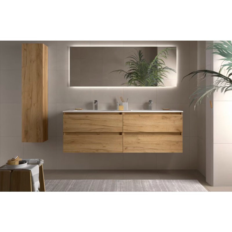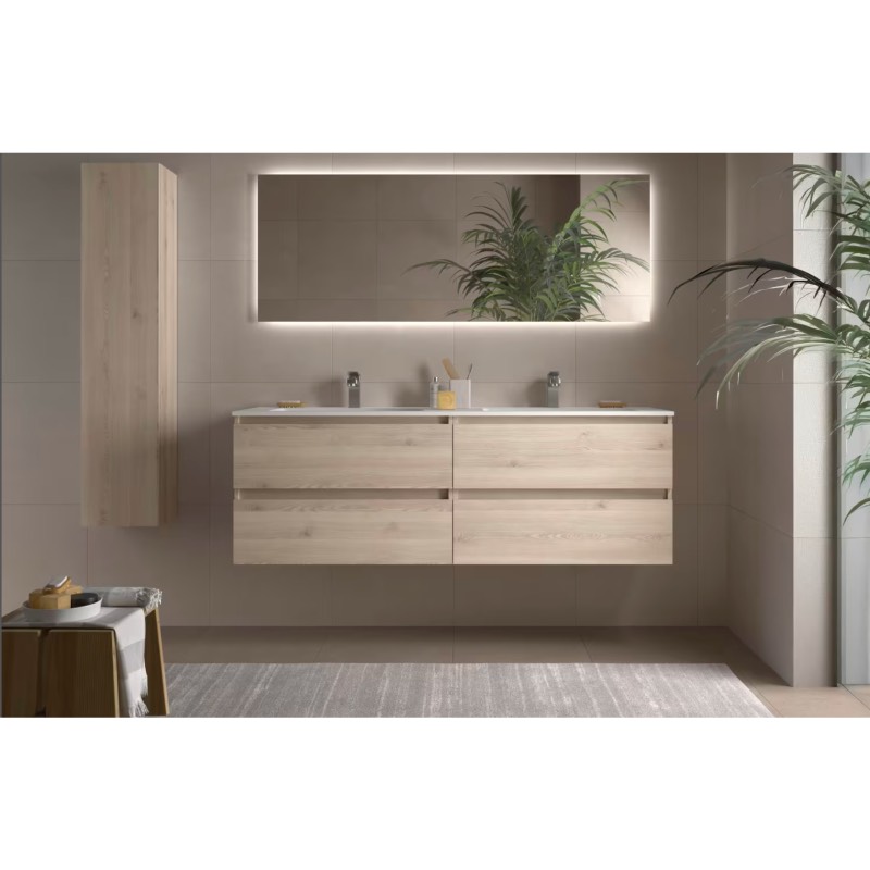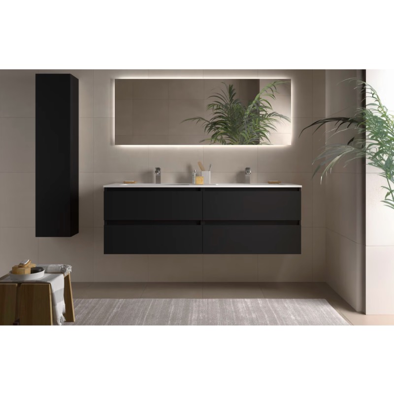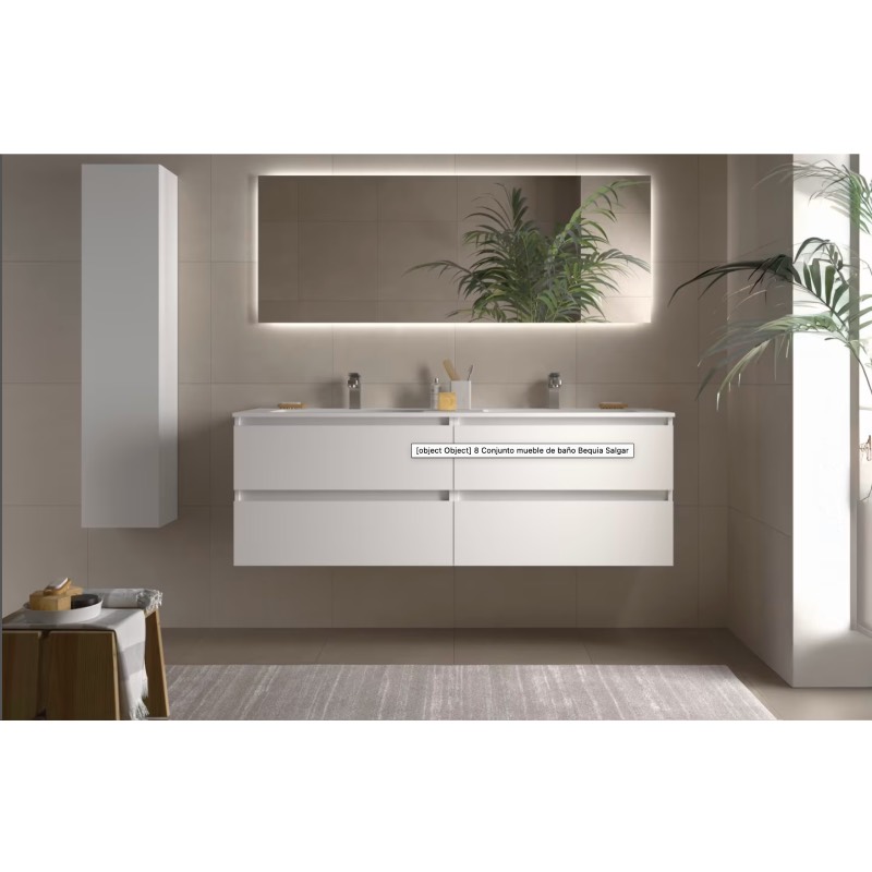 Descubre el mueble de baño Bequia de Salgar, diseñado para quienes buscan elegancia y funcionalidad en su baño. Este conjunto de 160 cm de ancho incluye un lavabo de Mineral Solid Vilna de doble poza, que ofrece un diseño moderno y una superficie resistente y fácil de limpiar.