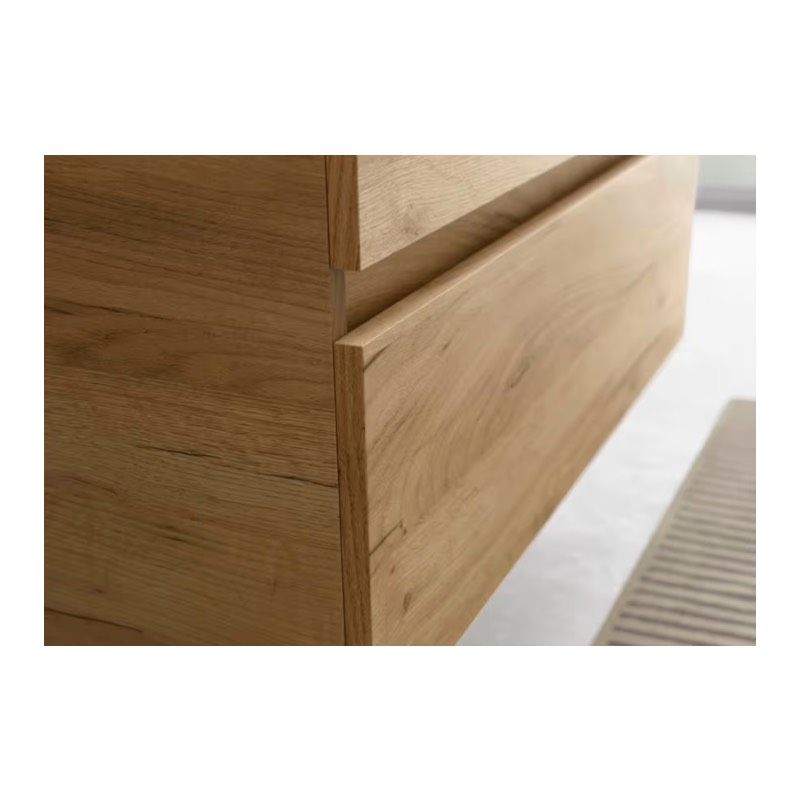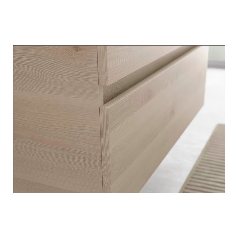Con 4 cajones amplios y cierre amortiguado, tendrás espacio suficiente para organizar tus productos de baño de manera práctica. Su diseño suspendido a la pared aporta ligereza visual, creando una sensación de amplitud y modernidad en el espacio.