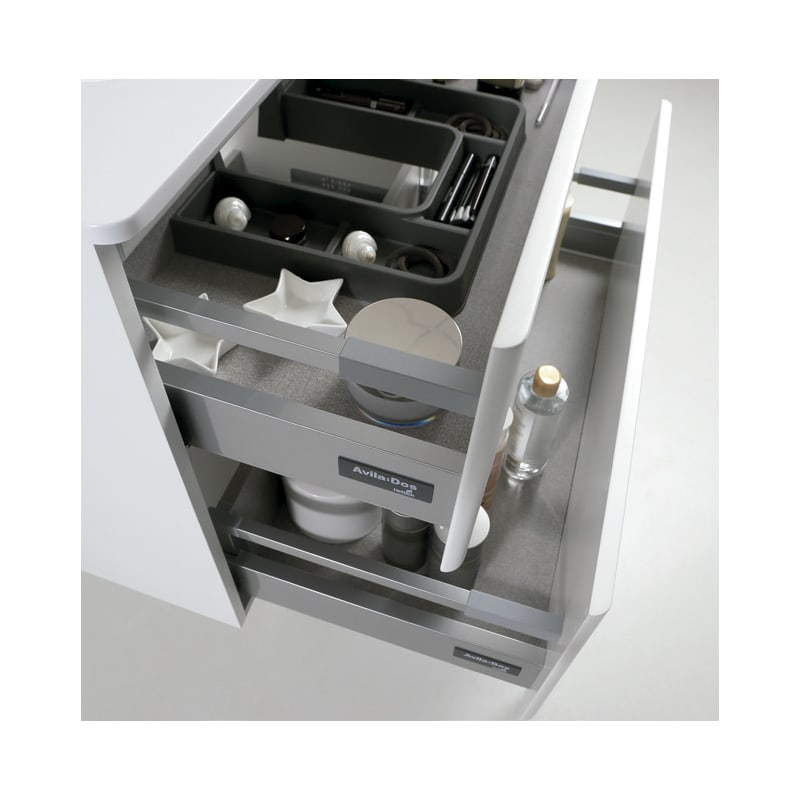 Los cajones cuentan con regulación en altura y un cierre amortiguado soft-close para evitar los golpes a la hora de cerrar el cajón.