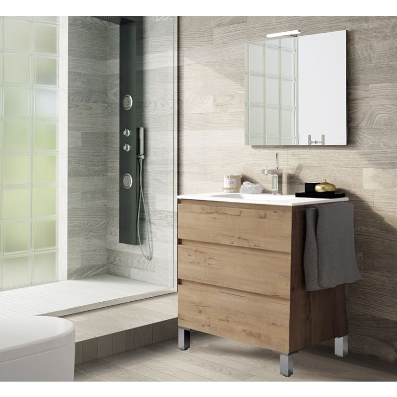 Puedes elegir entre varias configuraciones: Mueble + Lavabo o Mueble + Lavabo + Espejo + Aplique. El lavabo, que acompaña al mueble es el lavabo Plus de cerámica, fabricado en cerámica de alta calidad. Si opta por el espejo con aplique, este incluirá iluminación LED A++. Todos nuestros productos son 100% fabricados en España. Este mueble totalmente ensamblado haciendo muy sencillo su montaje.