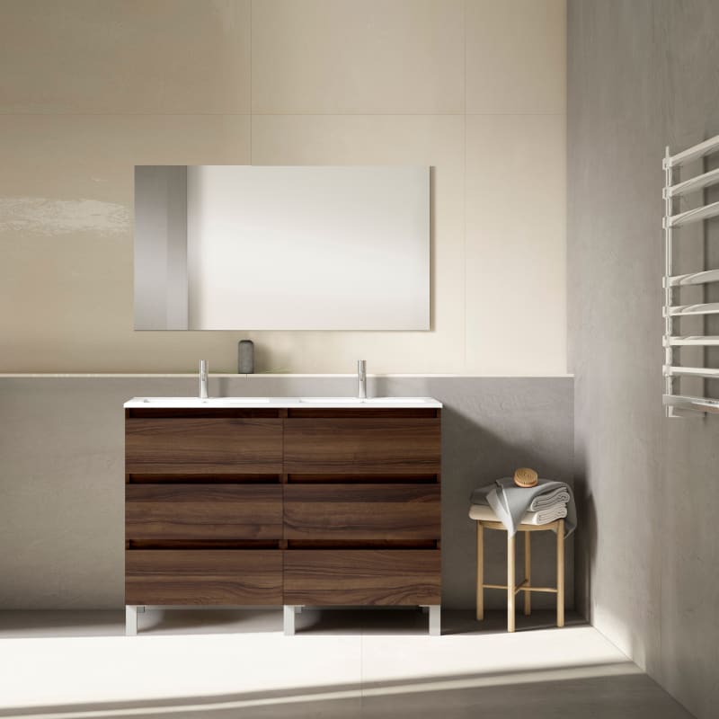 El reconocido fabricante Visobath nos ofrece uno de los muebles con más diseño de su nueva colección. Los laminados son de 16 mm con prestaciones mejoradas de alta resistencia y durabilidad. Cuenta con 6 cajones y guías ocultas.