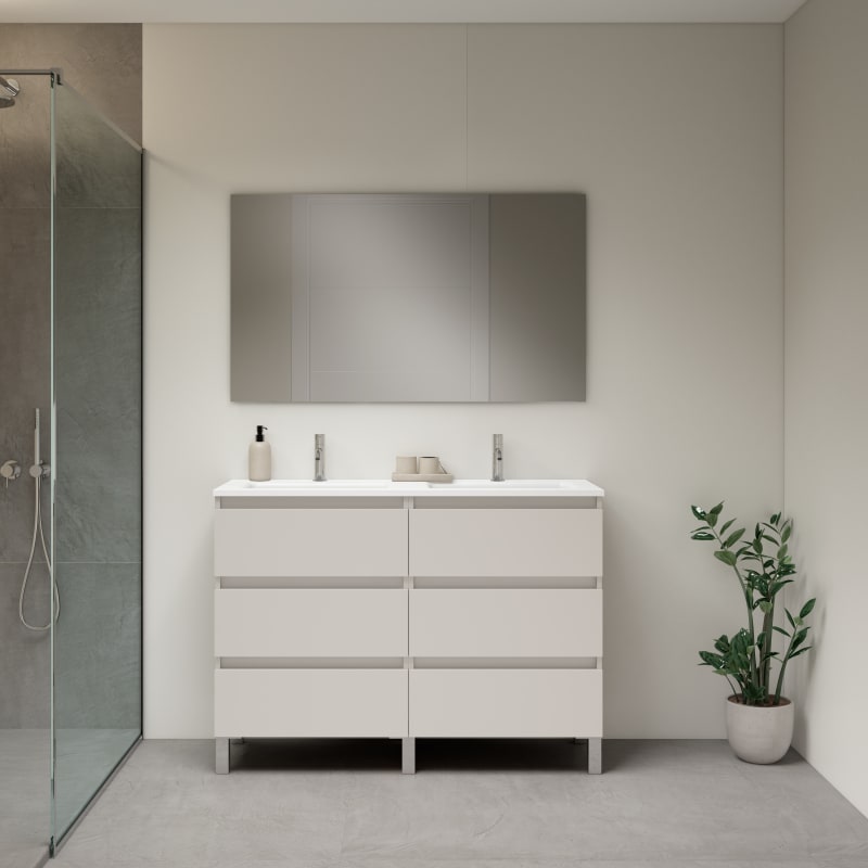 Puedes elegir entre varias configuraciones: Mueble + Lavabo o Mueble + Lavabo + Espejo + Aplique. El lavabo, fabricado en cerámica de alta calidad. Si opta por el espejo con aplique, este incluirá iluminación LED A++. Todos nuestros productos son 100% fabricados en España. Este mueble totalmente ensamblado haciendo muy sencillo su montaje.”