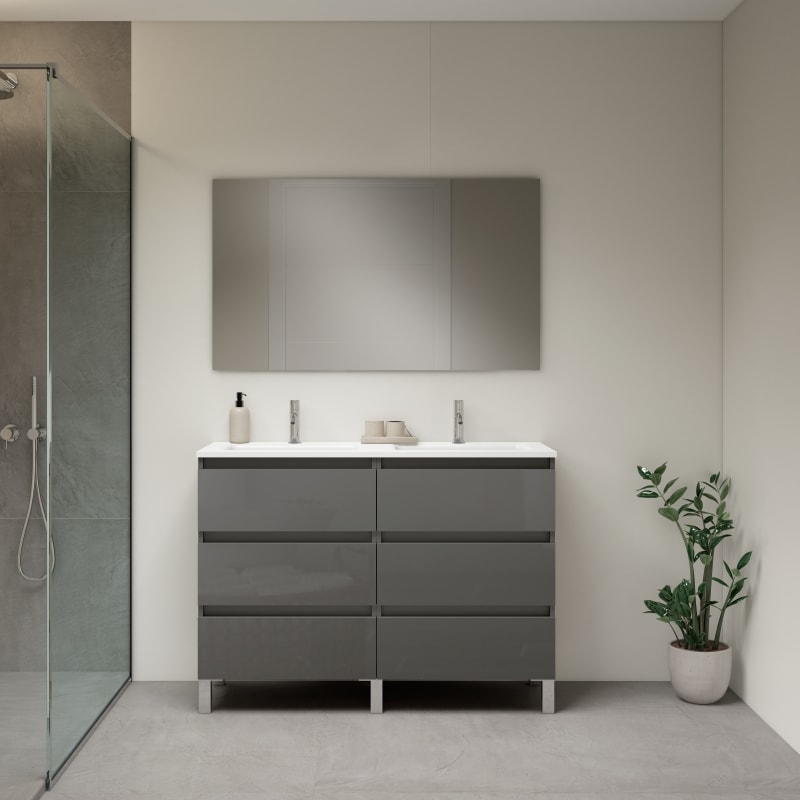 El reconocido fabricante Visobath nos ofrece uno de los muebles con más diseño de su nueva colección. Los laminados son de 16 mm con prestaciones mejoradas de alta resistencia y durabilidad. Cuenta con 6 cajones y guías ocultas.