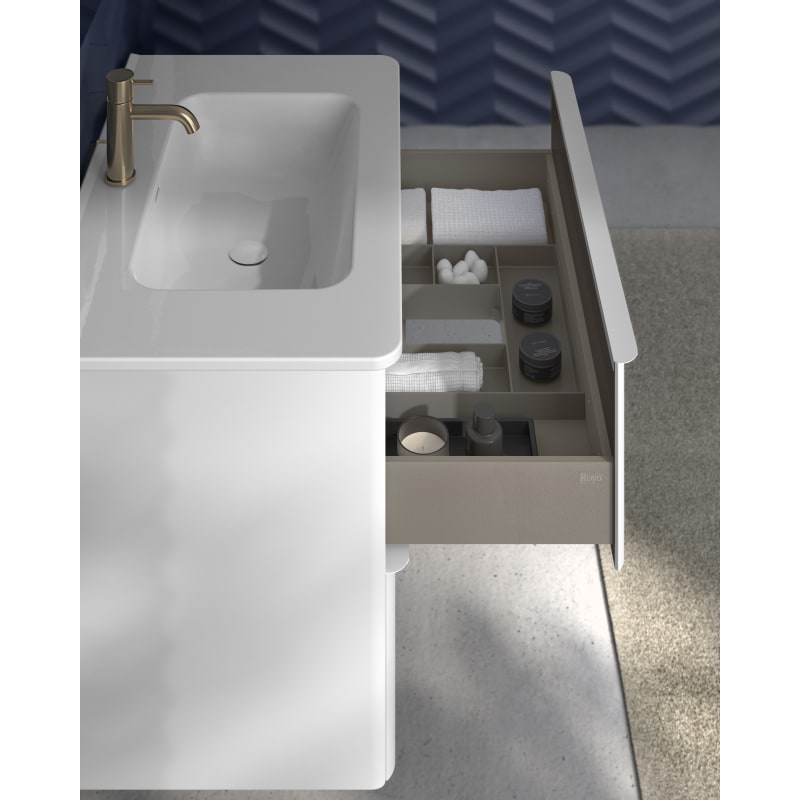 El reconocido fabricante Royo nos ofrece uno de los muebles con más diseño de su nueva colección. Los laminados son de 16 mm con prestaciones mejoradas de alta resistencia y durabilidad. Cuenta con 2 cajones y guías ocultas.