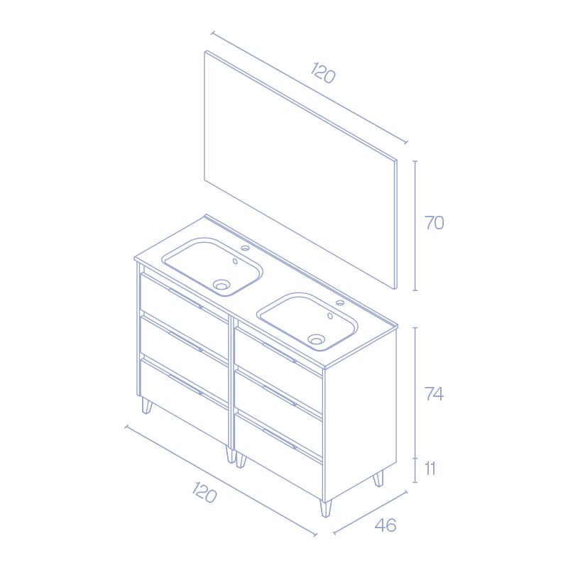 Descubre nuestro conjunto mueble de baño Suki, polivalente, ideal para espacios de cualquier tamaño. Disponibles en ancho de 120cm con una altura de 85cm y profundidad de 46cm, se adaptan perfectamente a tu baño. Su instalación es sencilla, montándose de manera cómoda. Ofrecemos una gran variedad de medidas y colores para que elijas el que mejor se adapta tu baño y mejor te combina