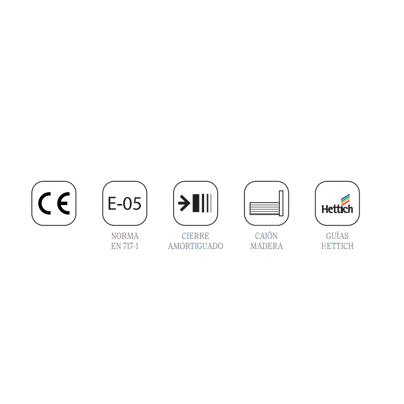 Los cajones cuentan con regulación en altura y un cierre amortiguado soft-close para evitar los golpes a la hora de cerrar el cajón.