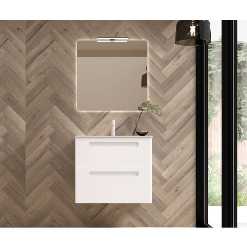 Puedes elegir entre varias configuraciones: Mueble + Lavabo o Mueble + Lavabo + Espejo + Aplique. El lavabo que acompaña al mueble es el lavabo Plus de cerámica, fabricado en porcelana de alta calidad. Si opta por el espejo con aplique, este incluirá iluminación LED A++. Todos nuestros productos son 100% fabricados en España. Este mueble totalmente ensamblado haciendo muy sencillo su montaje.