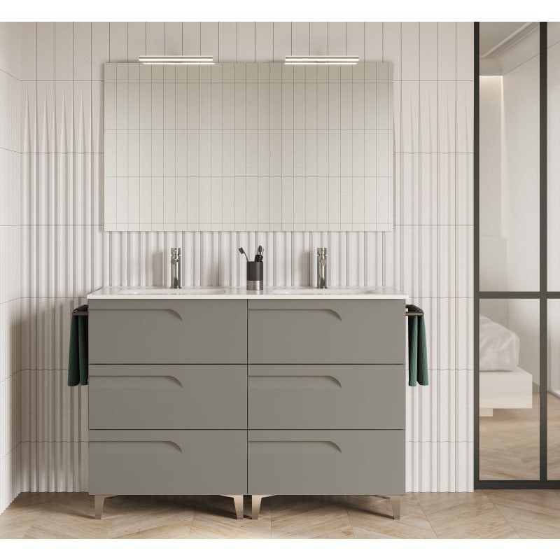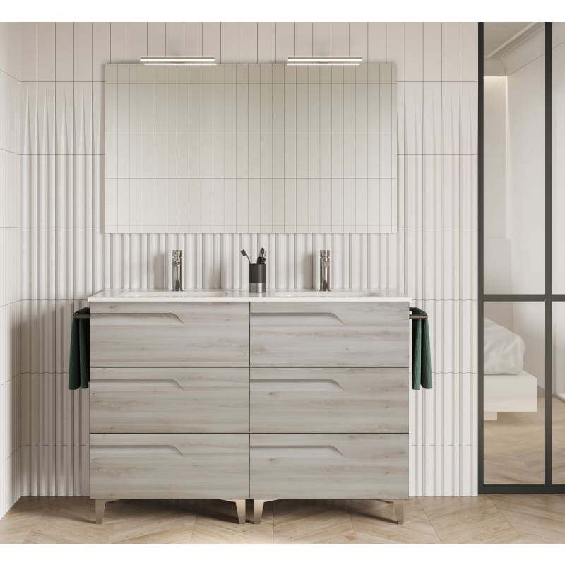 Con una amplia selección de colores, el Conjunto Vitale de 120 cm con 6 cajones te permite elegir entre una amplia variedad de colores. Estos acabados imitan a la perfección la belleza de la madera natural, aportando calidez y elegancia, otorgando un estilo único a tu baño.
