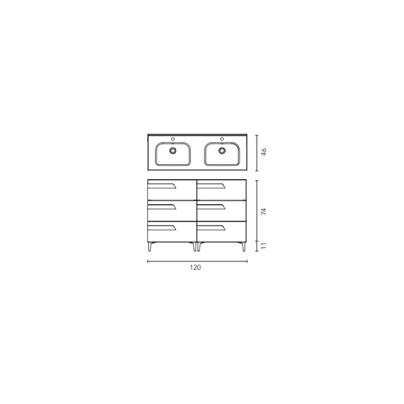Con unas dimensiones de 120 cm de ancho, 46cm de fondo y 85cm de alto, este mueble destaca por su generoso espacio de almacenamiento. Sus 6 cajones integrados te permiten mantener tus artículos de baño organizados y al alcance. Además, su estructura de tablero de partículas de madera asegura resistencia y durabilidad.