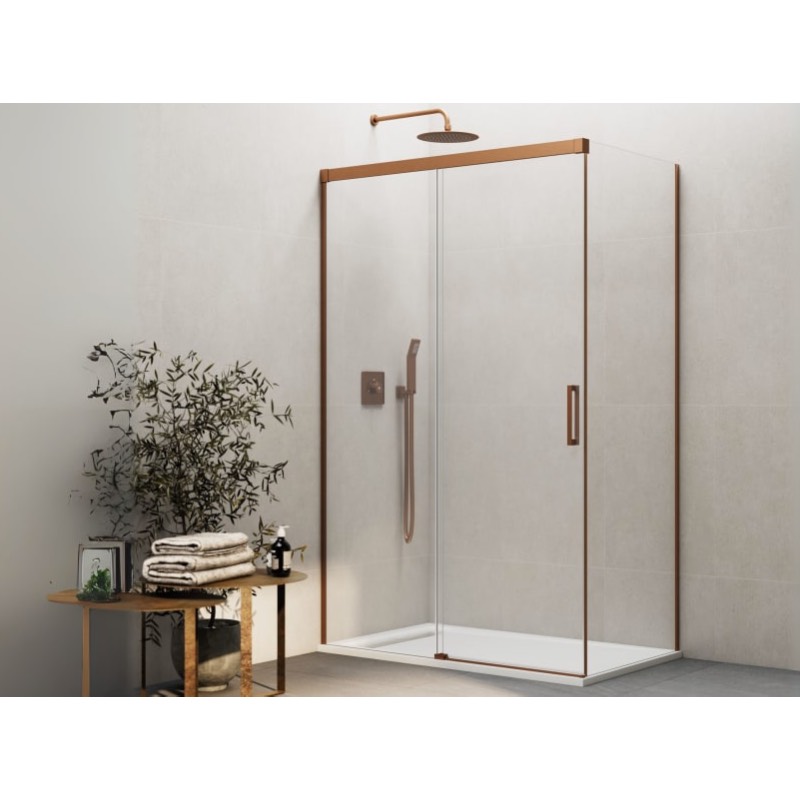 • Sistema Corredera + Fijo Frontal + Fijo Lateral: La puerta corredera se desplaza suavemente para ofrecer un acceso cómodo, mientras que los paneles fijos frontal y lateral garantizan estabilidad y un diseño limpio y moderno.