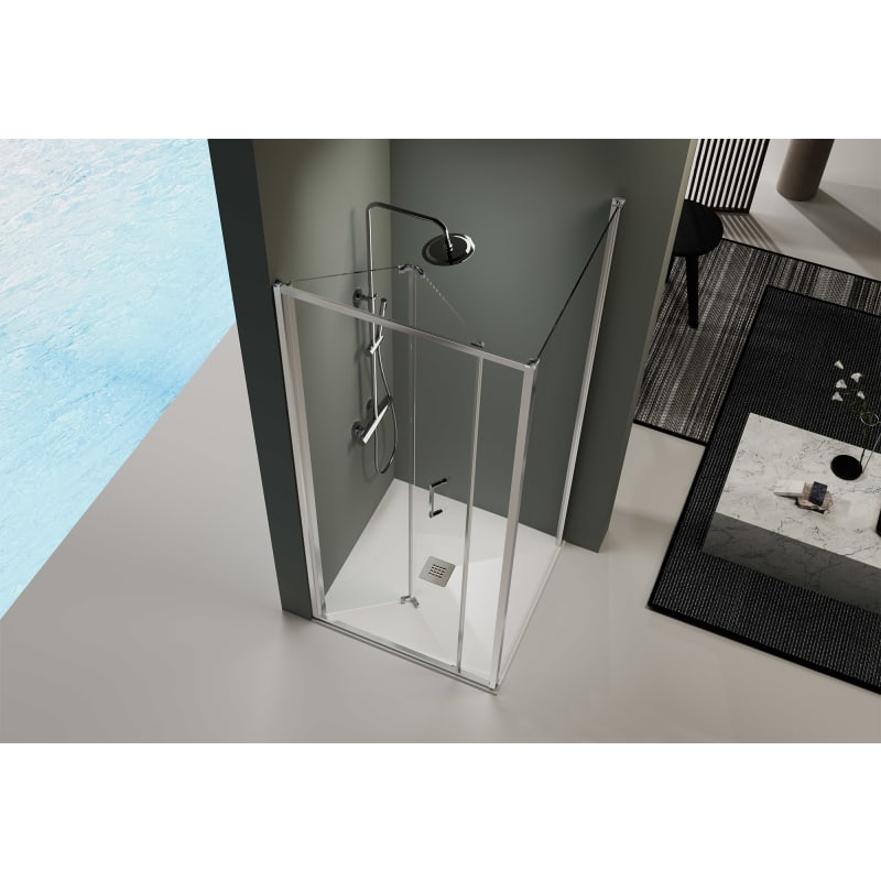 Aprovecha al máximo el espacio de tu baño con la mampara angular plegable, diseñada para ofrecer un acceso cómodo en baños pequeños o esquinas con espacio limitado. Su innovador sistema de apertura plegable permite optimizar el área de la ducha sin comprometer la elegancia ni la funcionalidad.