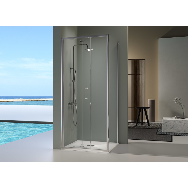 • Apertura plegable: Las puertas se pliegan hacia fuera, permitiendo una apertura amplia sin ocupar espacio adicional en el baño. Ideal para baños pequeños o esquinas con acceso reducido.