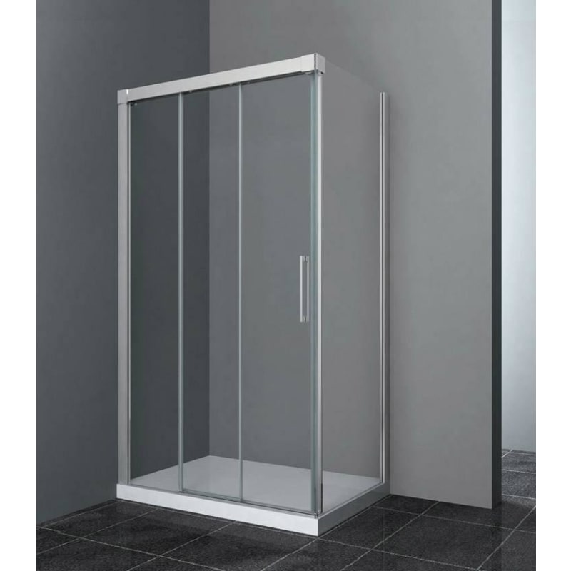 • 1 Fijo + 2 Puertas Correderas + lateral fijo : El panel fijo asegura la estabilidad estructural, mientras que las dos puertas correderas se deslizan suavemente, permitiendo un acceso cómodo y sin invadir el espacio del baño.