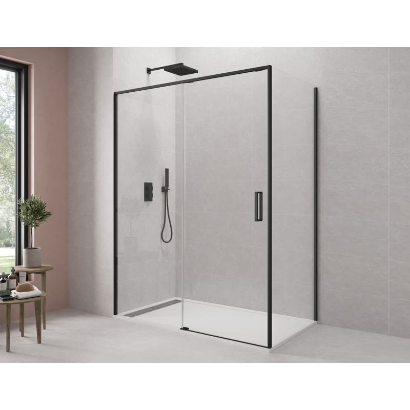Este modelo está disponible también en formato frontal, pero el angular con lateral fijo es ideal para cerrar herméticamente platos de ducha en una esquina del baño.