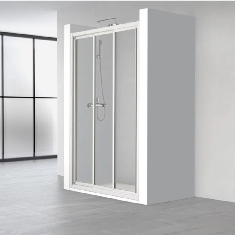 Maximiza el espacio y la funcionalidad de tu baño con nuestra mampara de ducha de 3 hojas correderas con perfil inferior. Este diseño inteligente permite un acceso más amplio sin sacrificar espacio, ideal para baños pequeños o medianos.