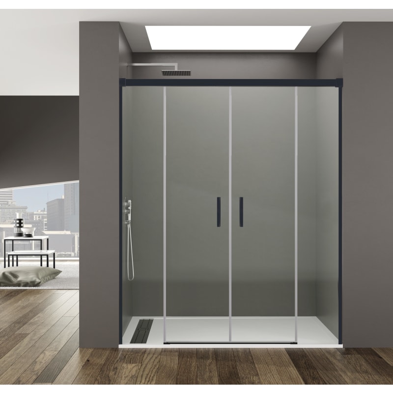 • Sistema : Las puertas correderas se desplazan suavemente para ofrecer un acceso cómodo, mientras que los paneles fijos frontal y lateral garantizan estabilidad y un diseño limpio y moderno.