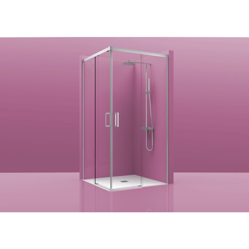 • Diseño Angular con 2 Fijos y 2 Puertas Correderas: Las hojas fijas garantizan estabilidad, mientras que las dos puertas correderas ofrecen un acceso amplio y cómodo a la ducha. El sistema de correderas permite una apertura suave y sin esfuerzo, sin invadir el espacio exterior.