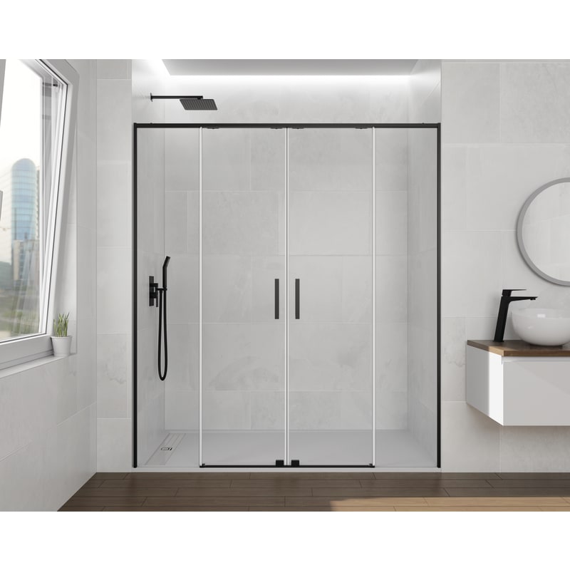 Sumérgete en el lujo y la funcionalidad con la Mampara de ducha de composición 2 Fijas + 2 correderas. Con vidrio transparente de 6 mm de grosor y tratamiento antical incluido, esta mampara de ducha frontal del fabricante GME garantiza una experiencia deslumbrante y de fácil limpieza. Con una altura de 195 cm y un tirador doble asa, ofrece comodidad y estilo. El cierre magnético y los rodamientos superiores ocultos garantizan un cierre seguro y suave. Además, es reversible, cuenta con sistema antivuelco y liberación de puertas. Con su diseño de cruce de hoja de 1-6 cm y perfil inferior sin perfil, obtienes un aspecto moderno. Con nivel 2 de estanqueidad, fabricación estándar y 3 años de garantía. ¡Disfruta de la calidad y el diseño excepcionales en tu mampara ducha GME!