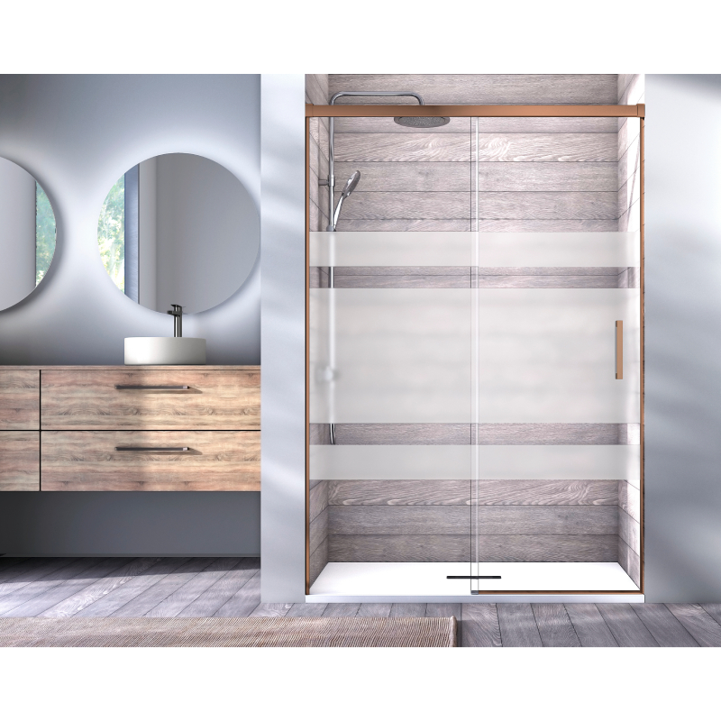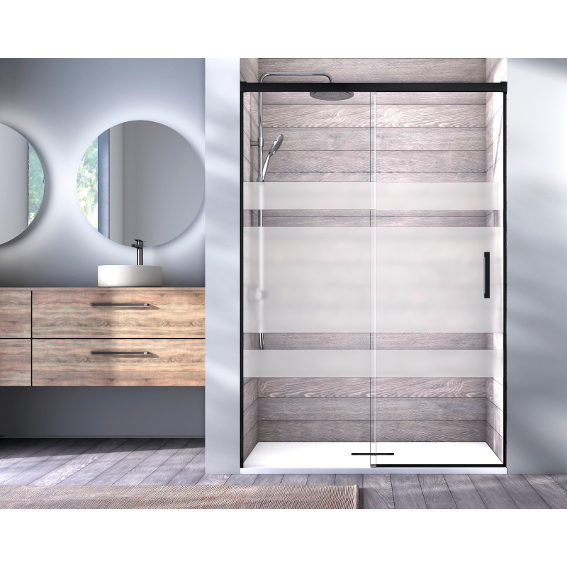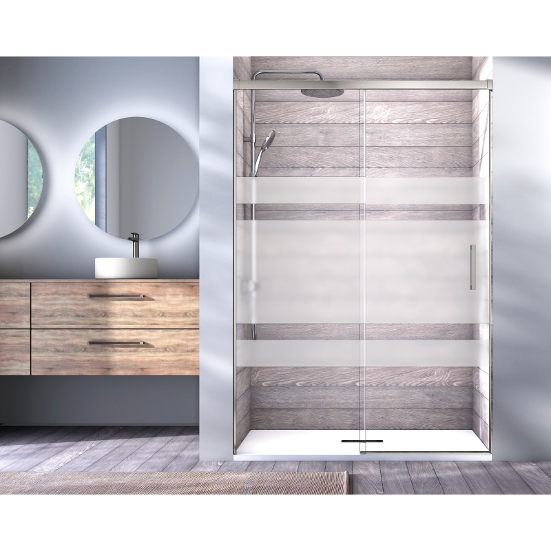 Esta mampara reversible cuenta con sistema antivuelco y liberación de puertas para mayor seguridad. Su perfil inferior sin perfil ofrece una estética minimalista y moderna. La estanqueidad de nivel 2 proporciona una protección media contra salpicaduras.