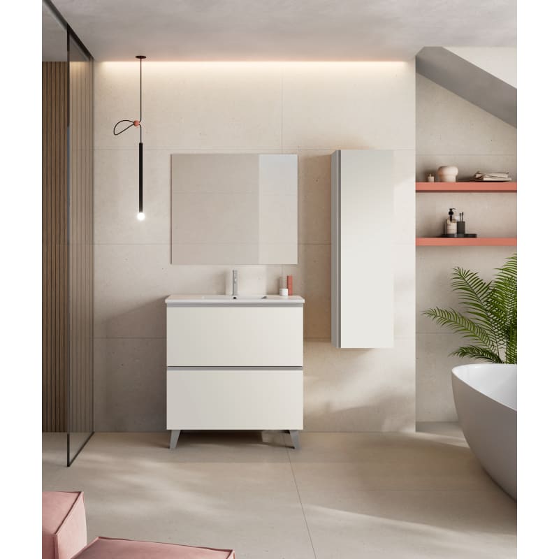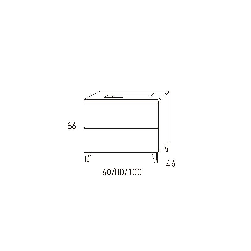 Descubre nuestro mueble de baño Granada. Un mueble con dos cajones, polivalente, ideal para espacios de cualquier tamaño. Disponible en varias medidas, con una altura de 86 cm y profundidad de 45cm, se adaptan perfectamente a tu baño. Su instalación es fácil y sencilla
