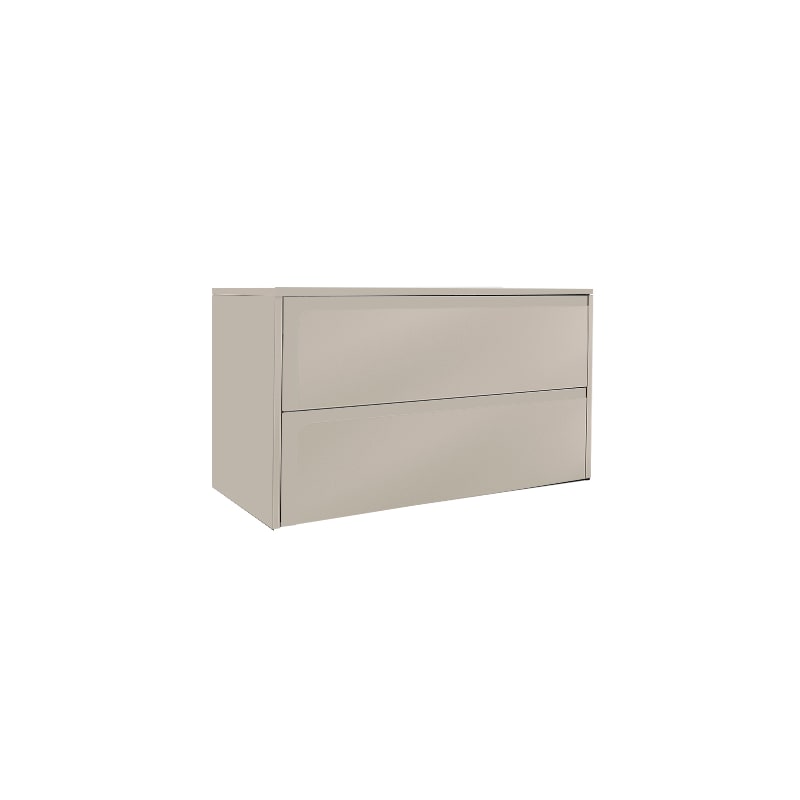 Dispone de dos cajones metálicos de extracción total con cierre amortiguado, ofreciendo un almacenamiento cómodo y accesible. El interior, revestido en textil gris, protege tus objetos personales, y los herrajes de sujeción incluidos facilitan su instalación.