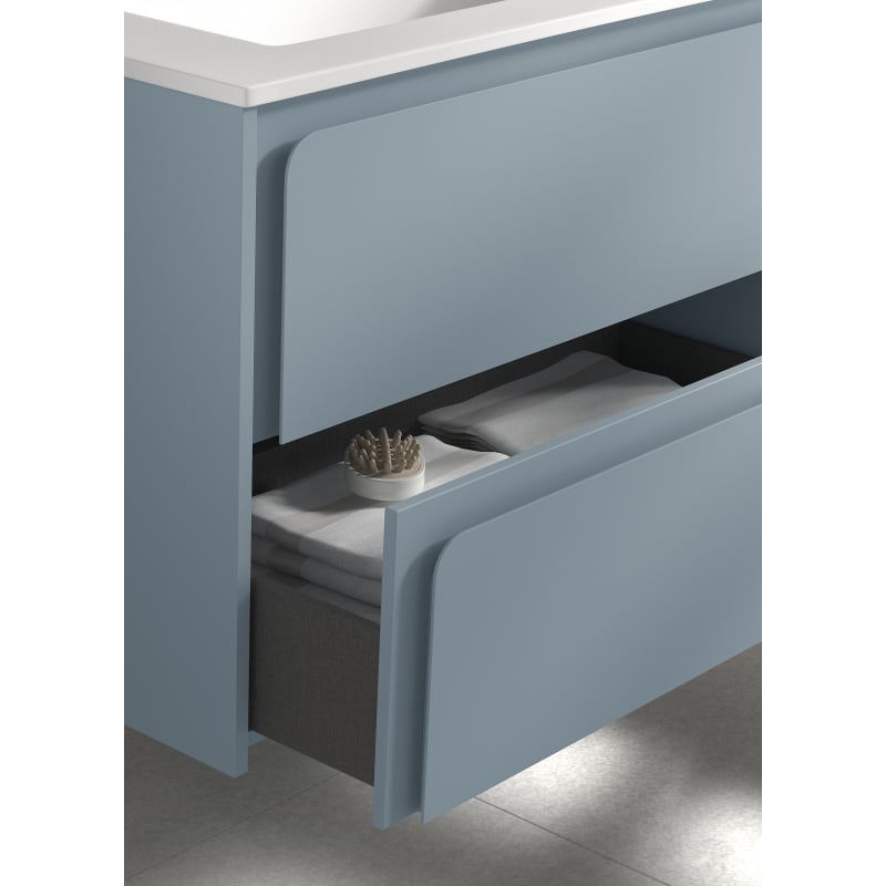 El reconocido fabricante Visobath nos ofrece uno de los muebles con más diseño de su nueva colección. Los laminados son de 16 mm con prestaciones mejoradas de alta resistencia y durabilidad. Cuenta con 2 cajones y guías ocultas.