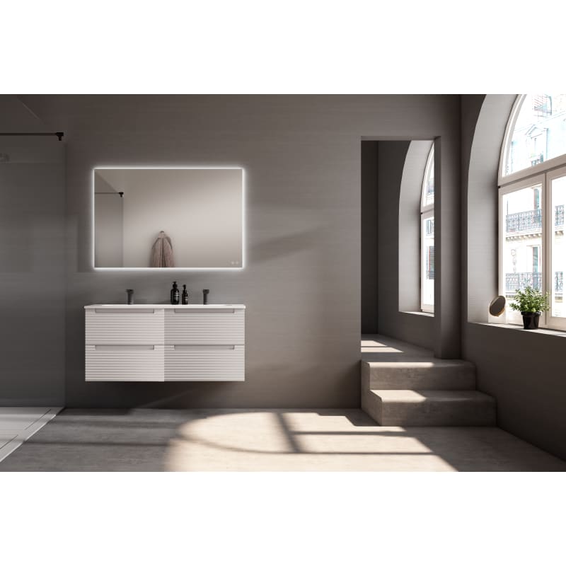 El reconocido fabricante Visobath nos ofrece uno de los muebles con más diseño de su nueva colección. Los laminados son de 16 mm con prestaciones mejoradas de alta resistencia y durabilidad. Cuenta con 4 cajones y guías ocultas.