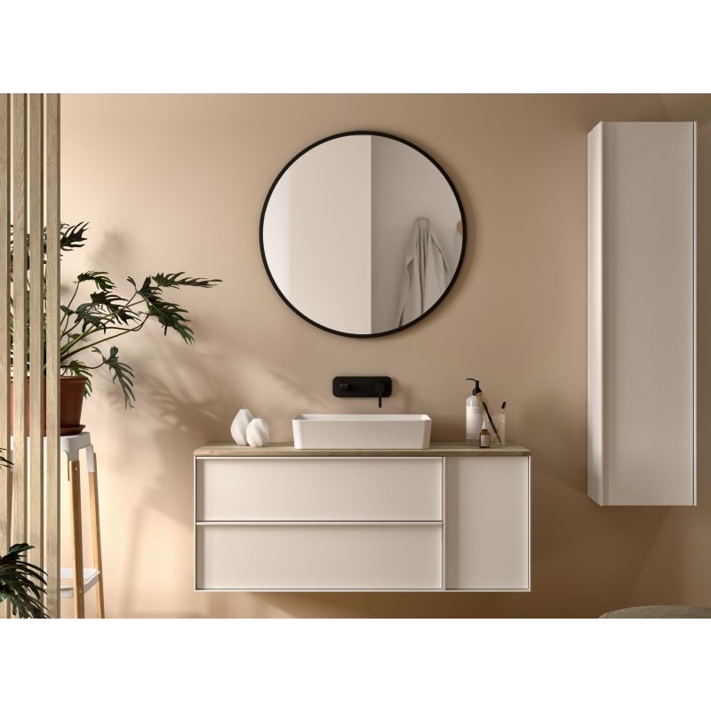 Descubre nuestro mueble de baño con dos cajones y una puerta , polivalente, ideal para espacios de cualquier tamaño. Disponible en varias medidas, con una altura de 48cm y profundidad de 45cm, se adaptan perfectamente a tu baño. Su instalación es sencilla, montándose directamente en la pared y cuenta con colgado.