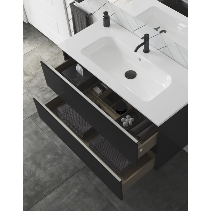 Descubre nuestro mueble de baño Vida, ideal para espacios de cualquier tamaño. Disponible en varias medidas de 80 a 100cm, con una altura de 56,5cm y profundidad de 45cm, se adaptan perfectamente a tu baño. Su instalación es sencilla, montándose directamente en la pared y cuenta con colgado.