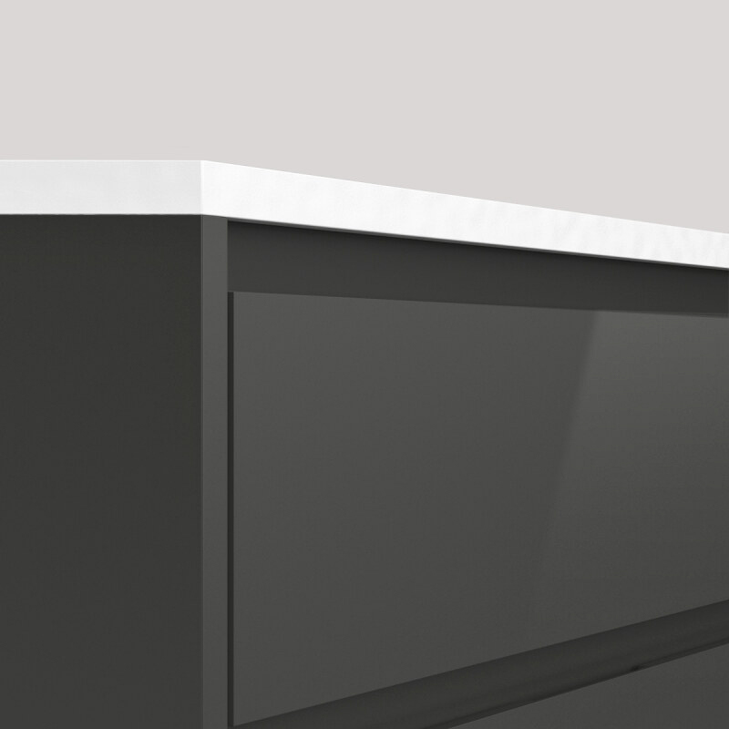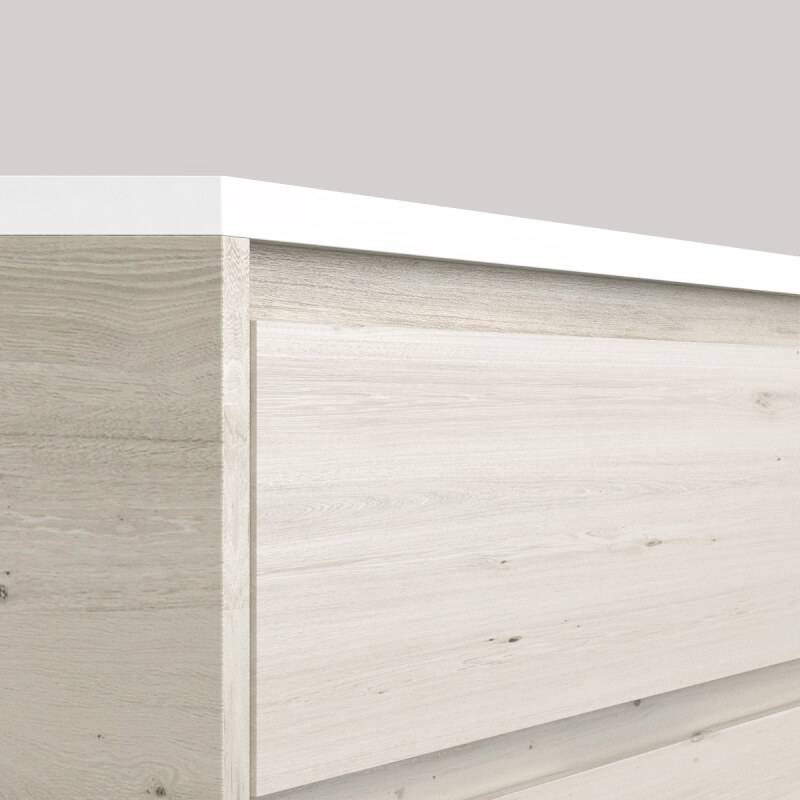 El reconocido fabricante Visobath nos ofrece uno de los muebles con más diseño de su nueva colección. Los laminados son de 16 mm con prestaciones mejoradas de alta resistencia y durabilidad. Cuenta con 4 cajones y guías ocultas.