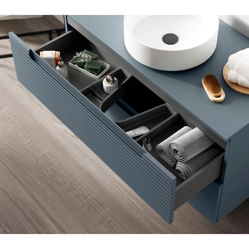 Los cajones cuenta con regulación en altura y un cierre amortiguado soft-close para evitar los golpes a la hora de cerrar el cajón.
