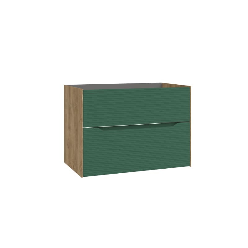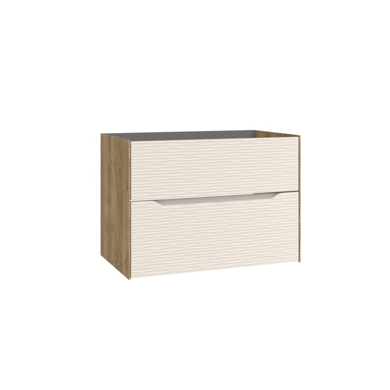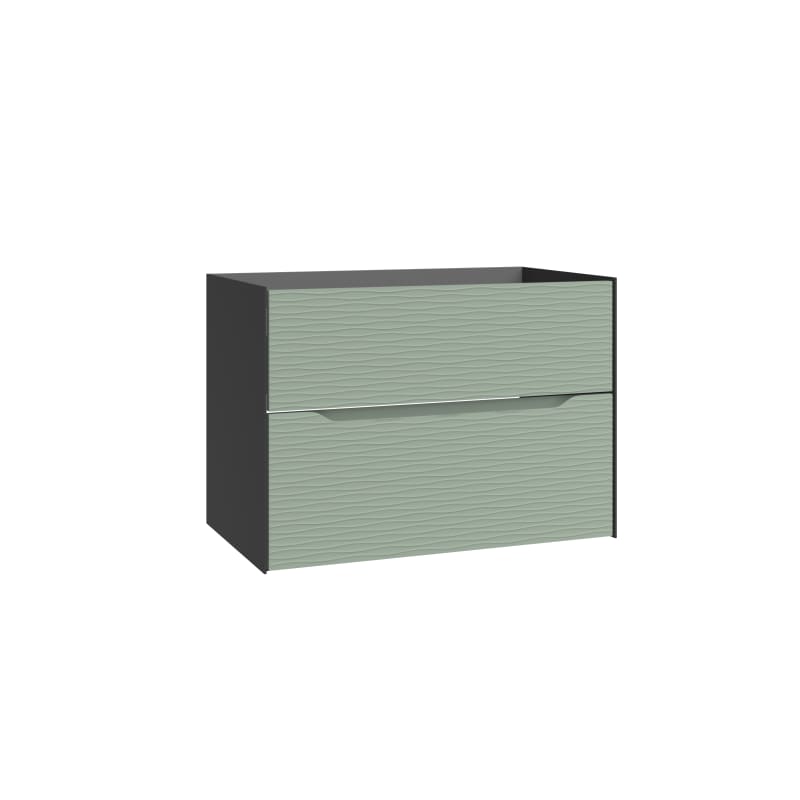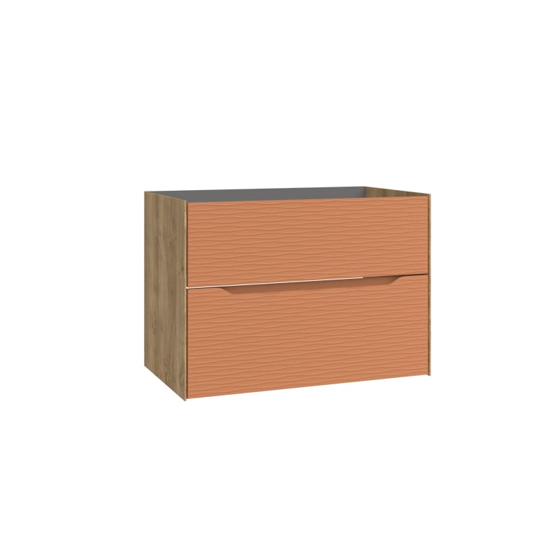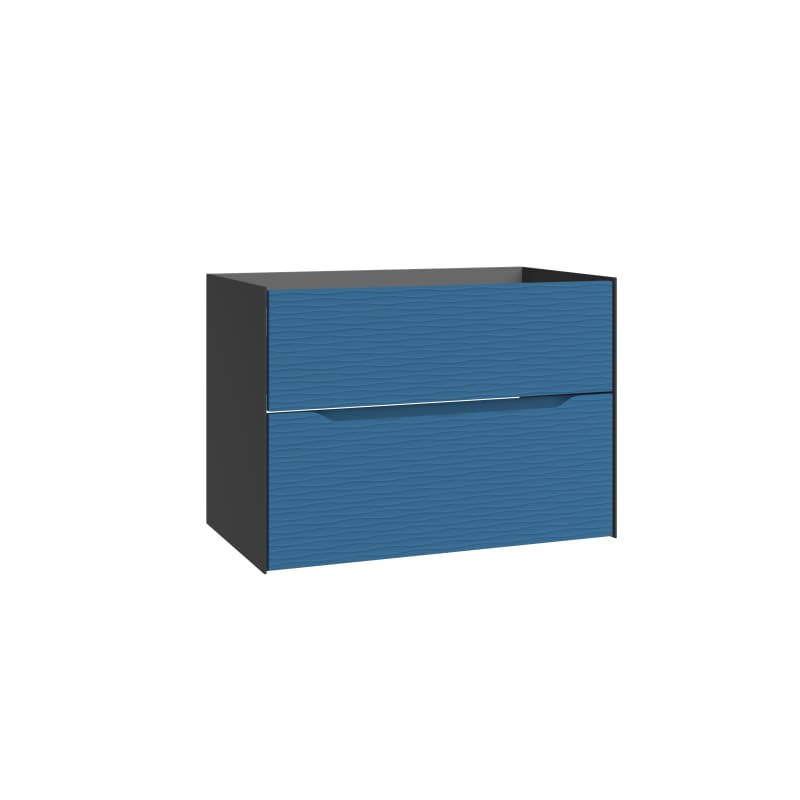 Disponemos de varias medidas de mueble para que encuentres la opción que mejor se adapte a tu baño:80 o 100 cm de ancho, con un fondo de 46cm y una altura de 55 cm. El conjunto también incluye 2 cajones con cierre suave amortiguado y guías Grass originales, con un acabado interior textil que añade un toque de sofisticación.
