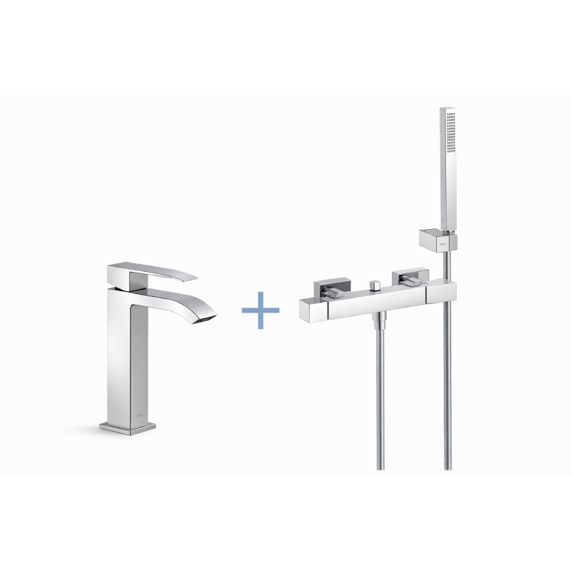 El pack de grifería Cuadro de Tres combina diseño moderno, funcionalidad y materiales de alta calidad para ofrecer una solución completa para tu baño. Fabricado en latón de gran resistencia, garantiza una excelente durabilidad y una alta protección frente a la corrosión, asegurando un uso fiable y prolongado en el tiempo.