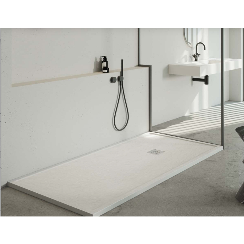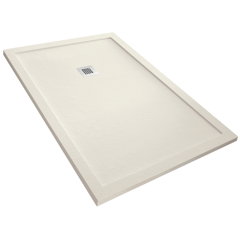 Disponible en seis colores —beige, blanco, gris claro, gris oscuro, negro y moka— se adapta fácilmente a cualquier estilo de baño. Incorpora rejilla alargada en posición estándar y válvula de desagüe, ambas incluidas en el precio.